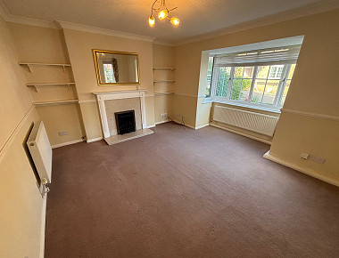 With Regency style fireplace housing real flame effect gas fire, dado rail, coved ceiling , radiator, uPVC double glazed box bay window, further uPVC double glazed window to side elevation, coved ceiling, telephone point. Measurements into bay & chimney recess.