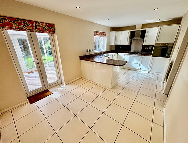 With modern fitted kitchen comprising gloss fronted wall and base cupboards in cream, granite effect worktops and splash backs, integrated gas hob with stainless steel extractor hood over, integrated dishwasher, stainless steel bowl shaped sink and drainer, integrated CDA electric oven , tiled flooring, radiator, down lighters, uPVC double glazed window, uPVC double glazed